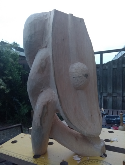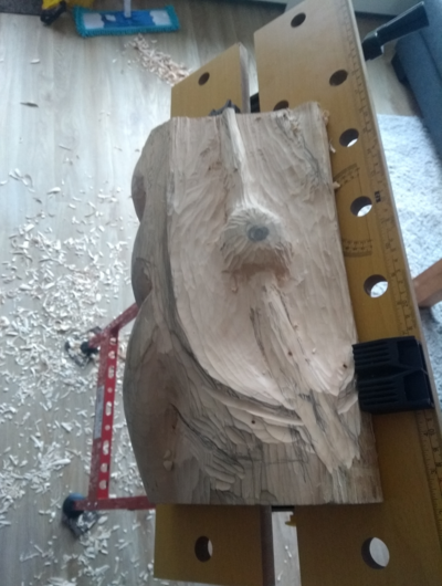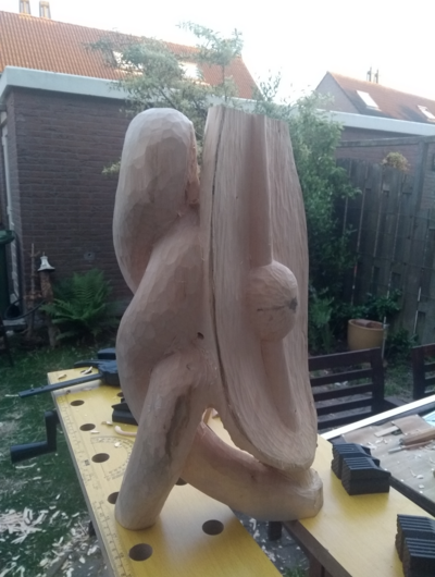 Houtsnij kunstwerk van een tak gesneden uit lindehout. Ik heb mij hier heerlijk laten meegaan door het hout en mijn handen de volle creativiteit gegeven.