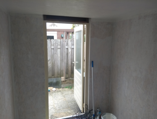 Mijn grootste angst is condens in de schuur waar duur gereedschap in staat. Het laatste wat ik wil is roest op mijn gutsen. Gelukkig is er een kier boven de deur en zijn er een paar voegen open aan de andere kant van de schuur. Dit zorgt ervoor dat de warme lucht ontsnapt en de vocht niet blijft hangen in de schuur. Ook zal ik isolatie plaatsen in de schuur.