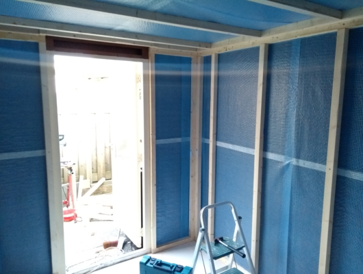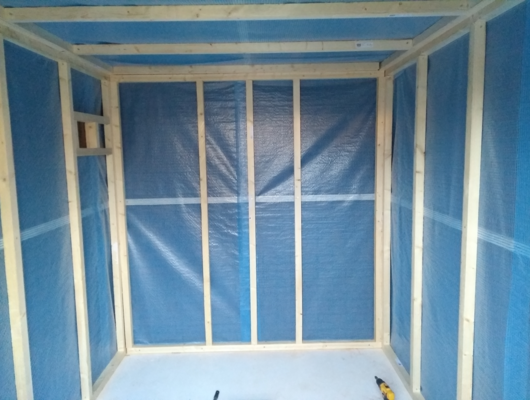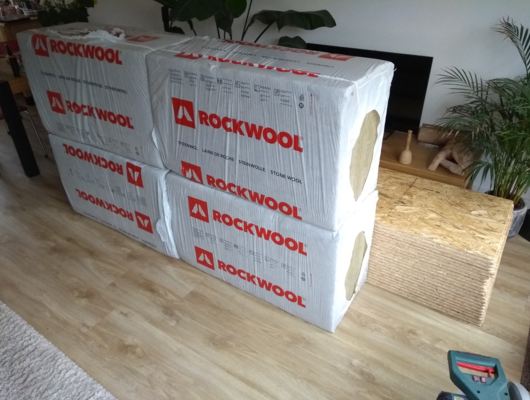 Daarna een flinke inkoopgedaan aan isolatie materiaal (steenwol) en OBS platen voor de muren. Het was even zoeken naar het juiste isolatie materiaal maar voor in de schuur leek mij dit de beste optie. Dit komt omdat het niet kan schimmelen en daarnaast een redelijke temperatuur en geluids isolatie heeft.